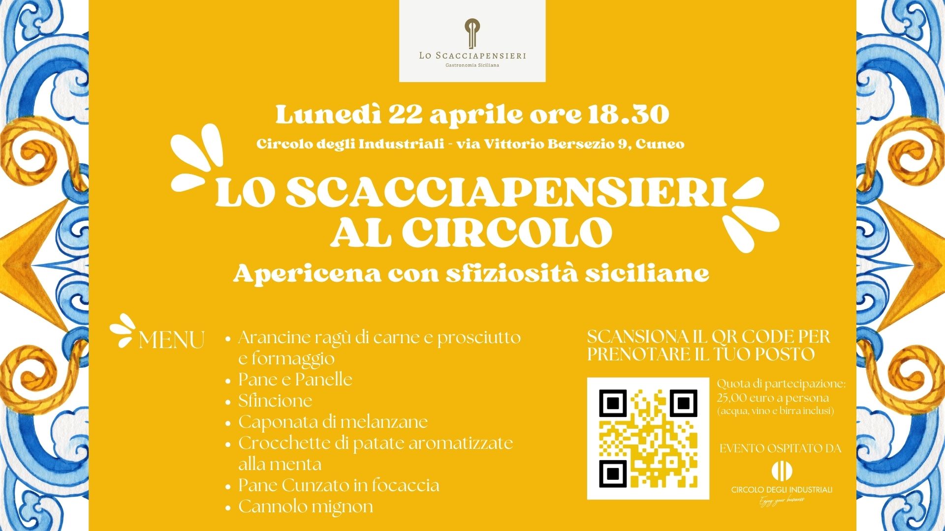 Lo scacciapensieri al Circolo - apericena con sfiziosità siciliane - lunedì 22 aprile ore 18.30, Cuneo