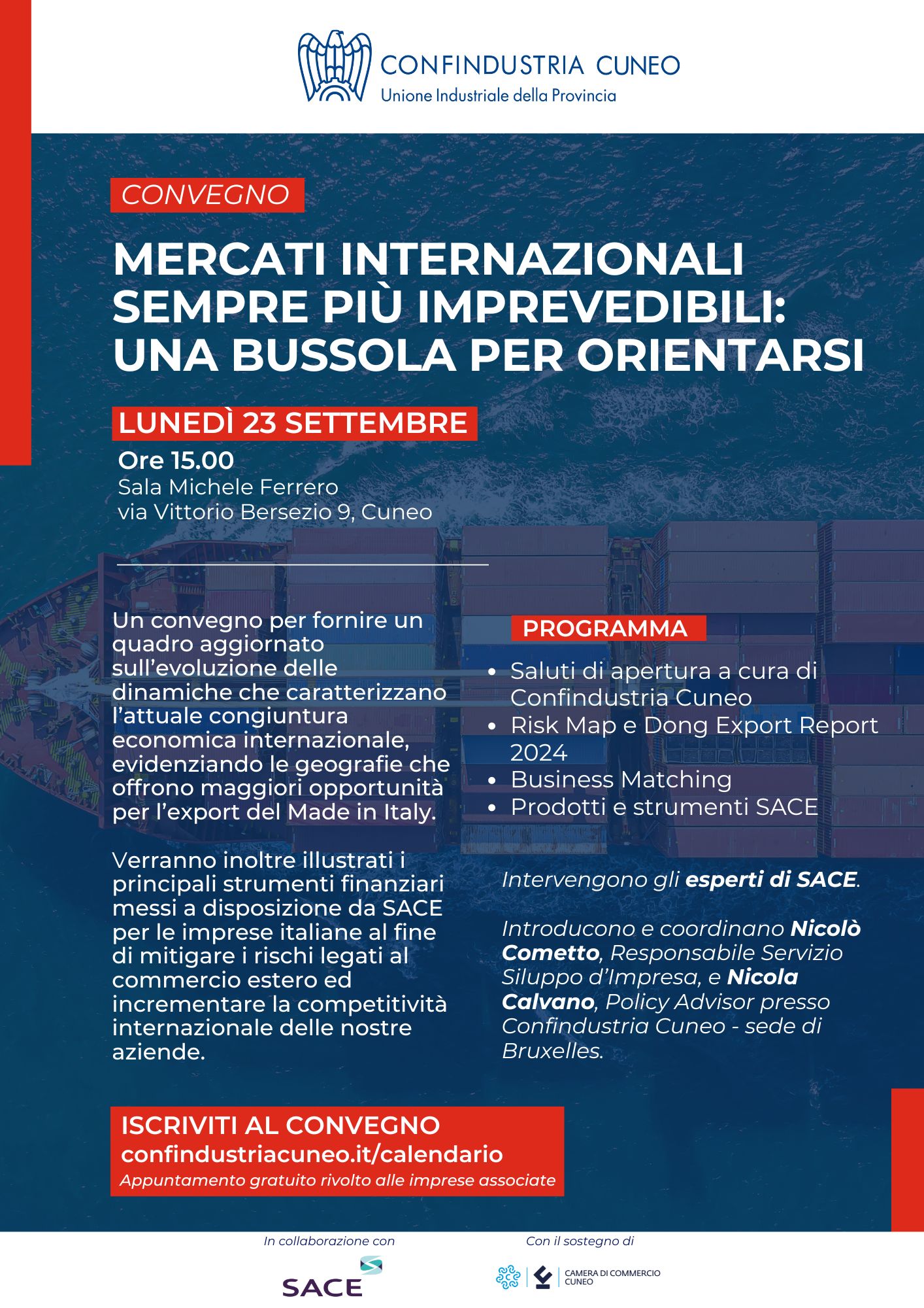 Convegno - Mercati internazionali sempre più imprevedibili: una bussola per orientarsi - lunedì 23 settembre ore 15.00, Cuneo