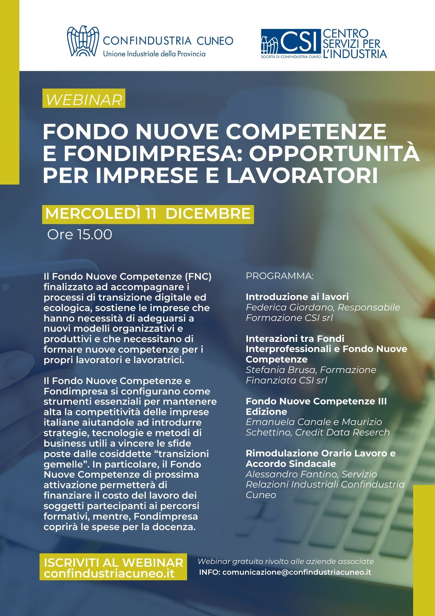 Webinar - Fondo nuove competenze e Fondimpresa: opportunità per imprese e lavoratori - mercoledì 11 dicembre ore 15.00