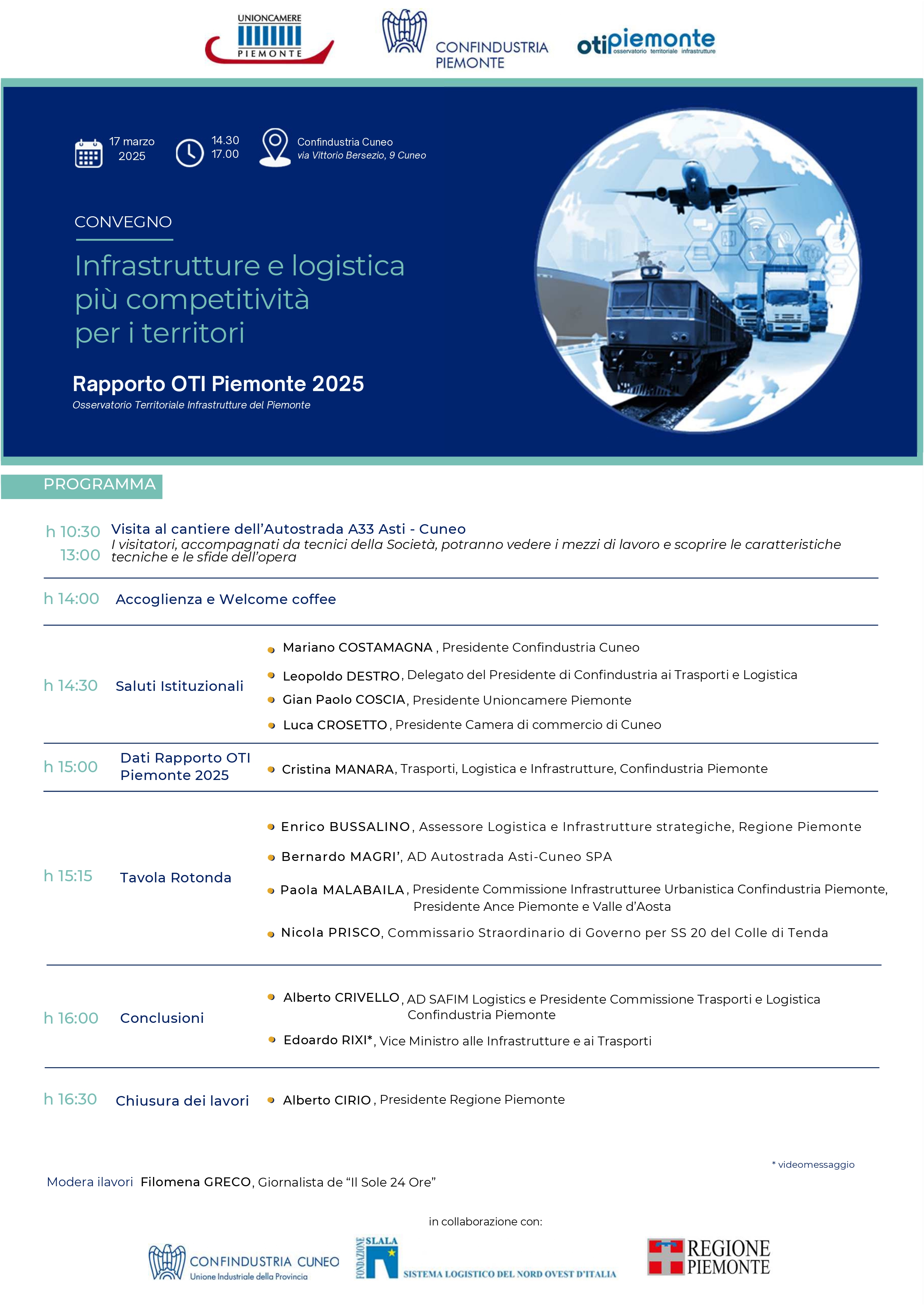 Convegno "Infrastrutture e logistica: più competitività per i territori - presentazione del Rapporto OTI Piemonte 2025" - lunedì 17 marzo ore 14.30, Cuneo