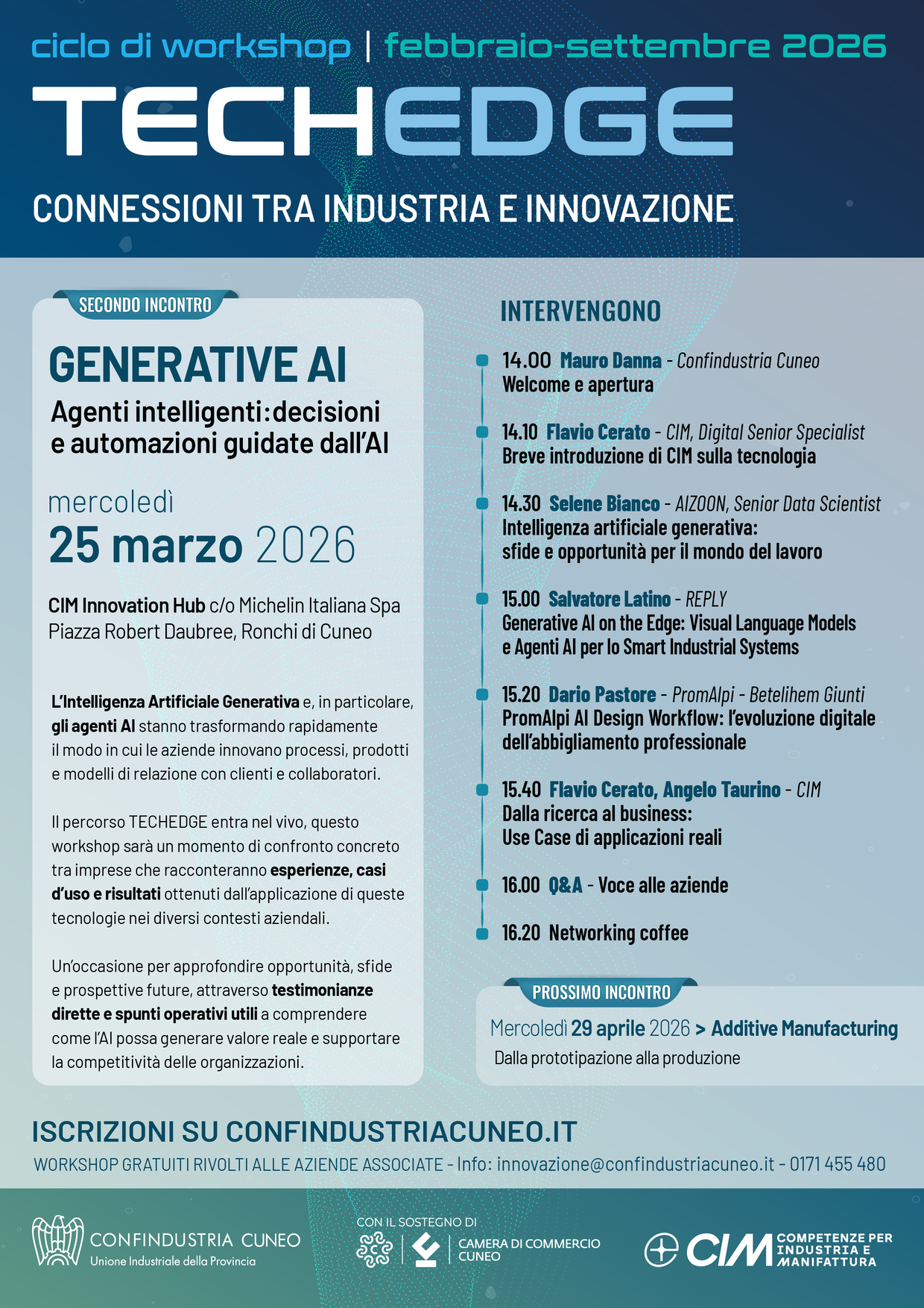 L'incontro fa parte del ciclo di workshop organizzati da Confindustria Cuneo e CIM all'Innovation Hub presso Michelin Italiana S.p.a.