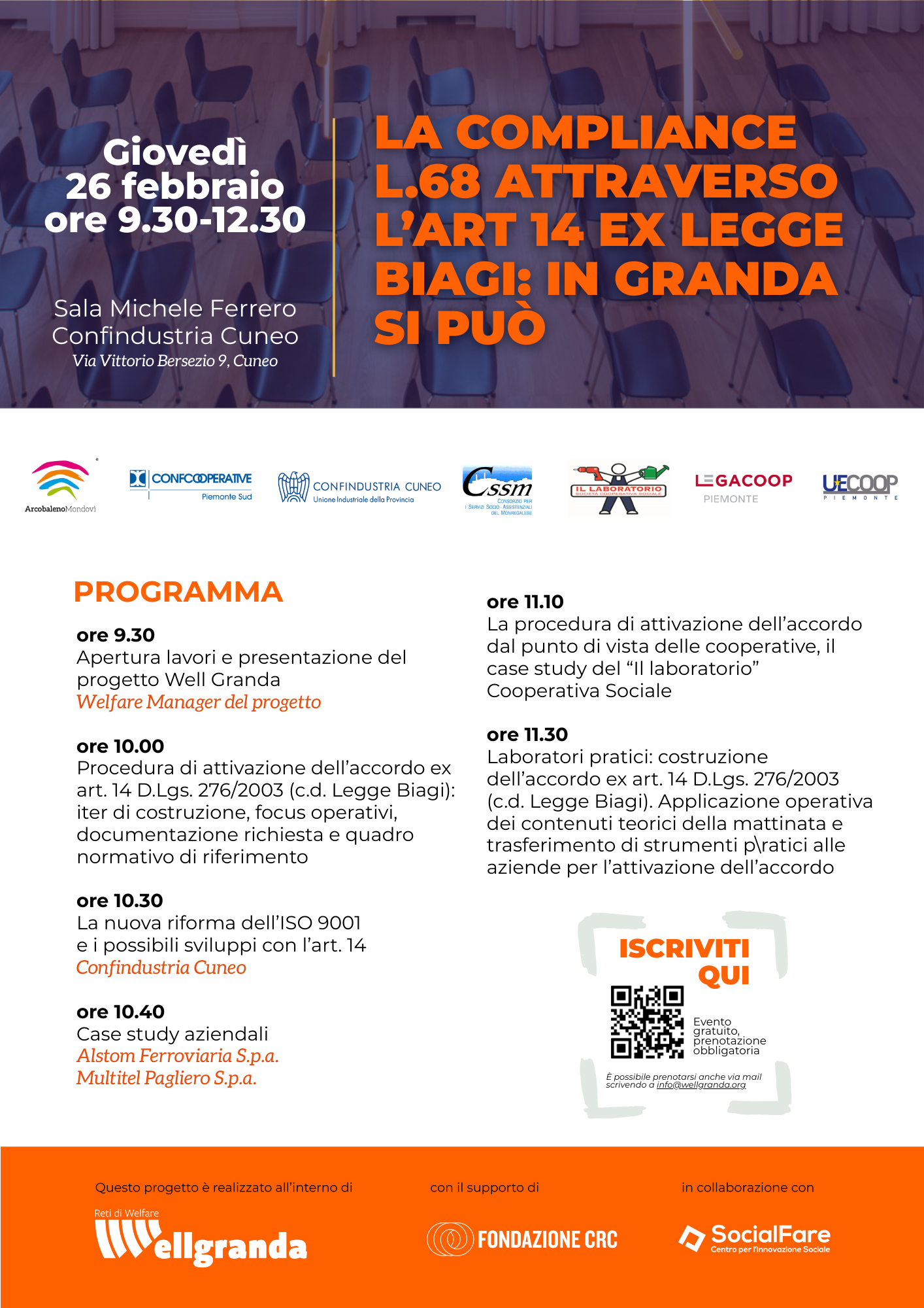 Evento Wellgranda - La compliance L.68 attraverso l’art 14 ex Legge Biagi: in Granda si può
